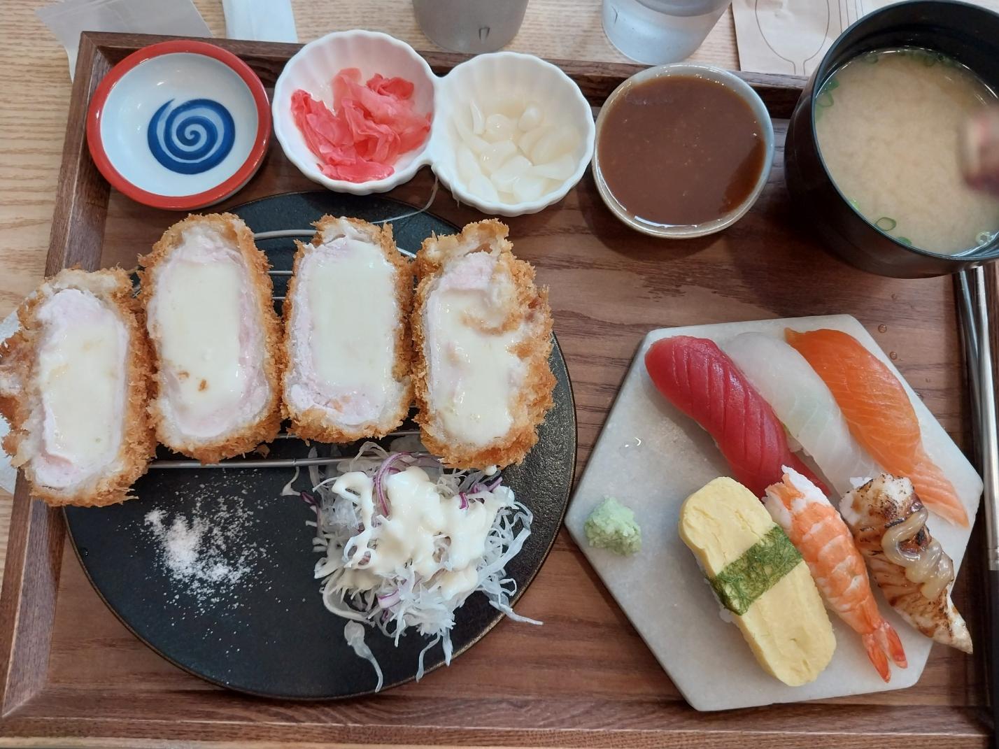 오마카세 초밥, 치즈돈가스 초밥, 나가사키 라멘 초밥을 시켰어요.